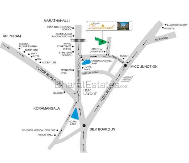 Klassik Landmark is yet another prestigious project with world class facilities that houses only large and premium 3 BHK luxury apartments in the heart of burgeoning eastern corridor of Bangalore. Spacious with loads of natural light and lush greenery all around and intelligent use of space. Located in the prime location about 2 Kms from Sarjapur Road and about 4 Kms from NH 7 (Hosur Road) next to Amrita Vishwa Vidyapeetam and KRJ Arogya Super Speciality Hospital. Shopping Malls, international schools and hospital are in close proximity to the property.