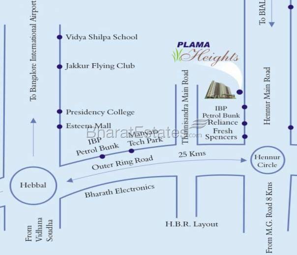No Compromise.That aptly sums up PLAMA Heights. Sprawled over 2.5 acres of prime, landscaped location off Hennur Main Road, this majestic residential complex leaves no stone unturned to ensure you a life of pure luxury.At PLAMA Heights you will be able to maintain a comfortable distance from the madding crowd, at teh same time you will never miss the lively spirit of city life. The lush green environs will lure you to a stroll or you can just relax at the sprawling lawns. Enjoy life at PLAMA Heights without compromising on anything.