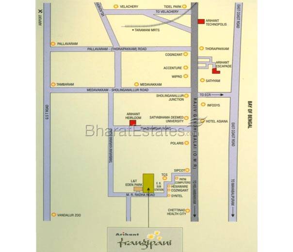 Frangipani yet another landmark project from Arihant is located in pudupakkam inside siruseri IT park on the old mahabalipuram road at the walking distance from leading IT companies like TCS, Hexaware, Cognizant, Syntel, Patni computers and many other.