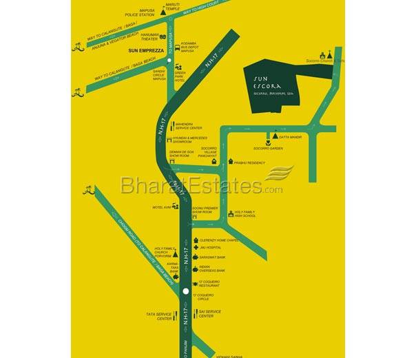 Sun Escora is spread across 4 Acres of hilly land surrounded by idyllic surroundings and picturesque hills, gives you a Goa that's carefree and noise free. This villa project is centrally located between Panjim & Mapusa and barely 1 1/2 km from NH17 Porvorim. This project is in close proximity to Schools, Hospitals, Banks, Restaurants, markets all within a 2 kms radius.
