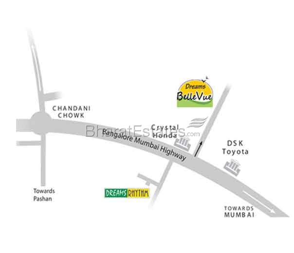 A Beautifully crafted project surrounded by nature's green mountains in a pollution -free zone. Promises to be Pune's newest landmark, soaring to the skies with stunning views, its none other than 'Dreams Belle Vue'. A place offering 137, 2 BHK apartments and 6, 3 BHK rowhouses beautifully allocated in the charm of Bavdhan. The construction bears the Dreams' stamp of quality and has been built with the best materials money can buy.