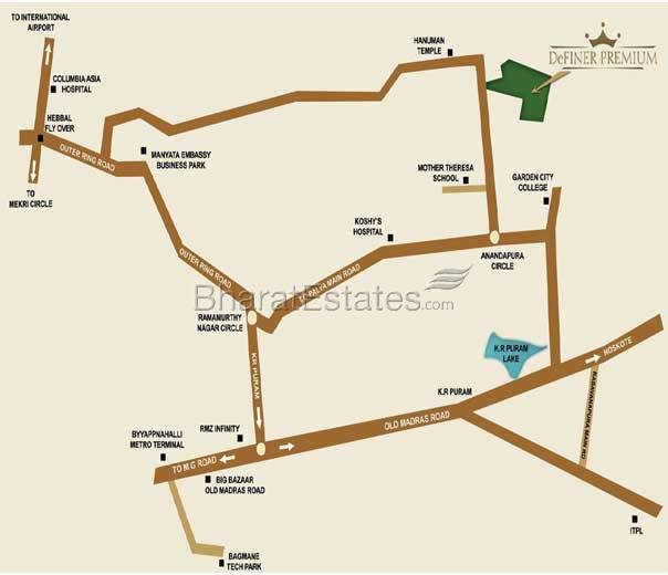 DeFINER Premium is just a stone's throw away from the upcoming metro station and the six lane Outer Ring Road. They provide unhindered accessibility to dillerent parts of the city. A parallel highway barely 2km from DeFINER Premium it tin would offer easier approach to BIAL (Bangalore International Airport). With a mission to infuse new meaning into urban living we are here with a perfect blend of superior lifestyle amenities and affordability.