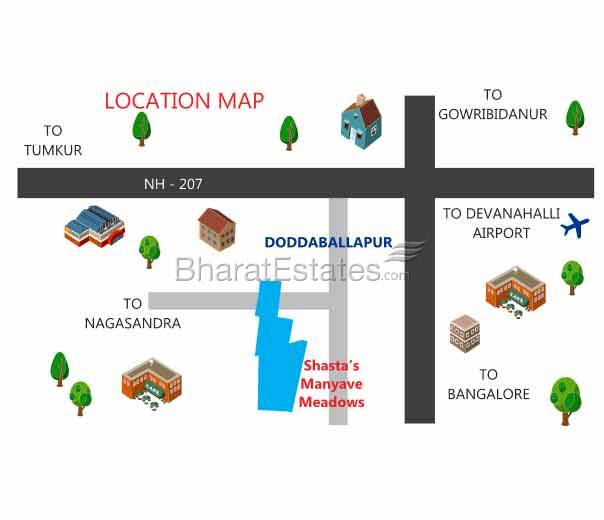 1 Km from the Doddaballapur Taluk Office), Shasta’s Manyave Meadows offers plots with all amenities that you would expect, including 50', 40' and 30’ wide asphalt roads, parks, etc. In other words these are ready for construction or as an investment.