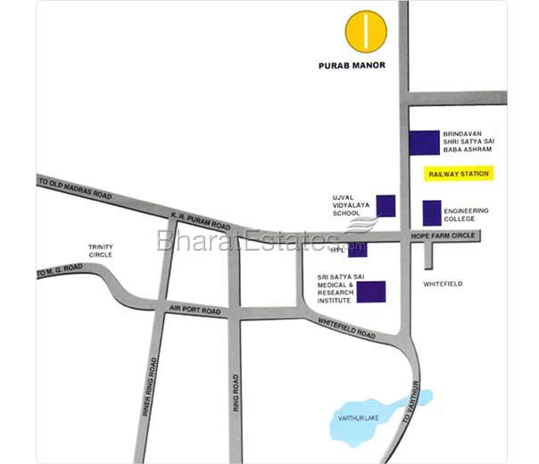 Purab Manor set in Whitefield- a tranquil sub-urban extension of Bangalore. Purab Manor offers an escape from the dreary and monotony of modern urbanity, reclusive in its exclusivity, yet offering close proximity to the city centre connected by a network of ring roads. The community lies closes to educational institutions, hospitals like sri satya sai medical and research institute, a host of multinational companies and software parks not to mention entertainment centers, restaurants and shopping malls.