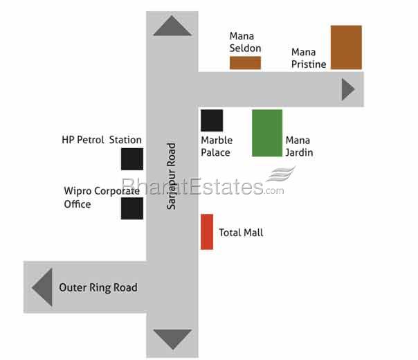Mana Jardin promises to give you that rare feeling of being far away from the rest of the world. But what is truly amazing about this property is that all this serenity and calm sits right in the middle of the city. Located strategically on Sarjapur Road, Mana Jardin lies in close proximity to schools, colleges, hospitals, offices, software parks, the Ring Road, Whitefield and state highways. So, even as you bask in tranquility, you are never really far away from anything that you need