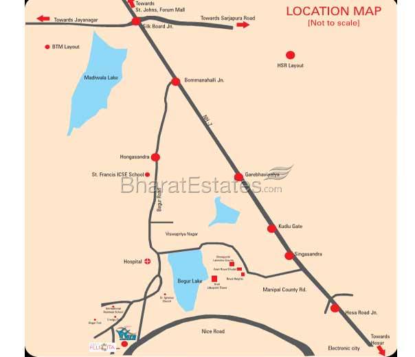 It is Located in Begur close to upcoming DLF new town (BTM extn) and Hiranandini Upscale. Aratt Felicita offers you the most peaceful yet well-connected settings in Bangalore. Begur is a hot destination right now as it has easy access to the road that connects to the Hosur Road and is well connected to Bannerghatta Road.
