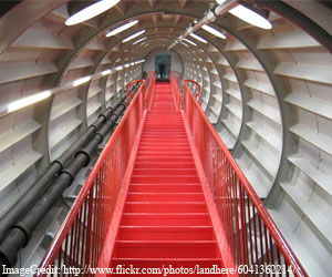 Inside the AtomiumAlbeit when you look at the structure it seems like envisioned sci-fi object, but structure is more than just a sight to behold and you can take a tour through the structure having functional access to five spheres and a panoramic view from the top most sphere is just a mesmerizing experience providing a huge canvas of the urban fabric of the Brussels. The base sphere of the structure offers a permanent exhibition dedicated to the fifties, while middle level spheres offer temporary exhibitions and a bar whereas the upper sphere comprises a restaurant providing a panorama.