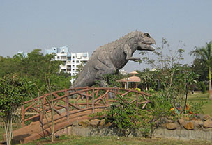 As the weekend approaches our kids get excited more than us as they want to go out with us to enjoy. We usually end up taking them to a movie that means spending time watching the screen or to mall where they find game zone kind of places to get attracted to. I personally feel that these kinds of entertainment are not healthy or should I say we are not spending quality time with our kids. But what if we take them to a garden as our parents did. May be it won’t sound like a modern way to entertain our kids but it is indeed the best way to enjoy and entertain kids. For overall development of kids playing in the open spaces in the lap of nature is the perfect enjoyment. While playing in the garden their physical, social, visual and mental development takes place. Apart from these they get to learn new things and takes interest in nature. As Pune city is becoming concrete jungle there are still few places where you can take your kids on a weekend evening. Before these spaces vanish let them enjoy and understand the importance of nature. Let me take you to one such garden which is one of the favourites of children of all ages. The Dinosaur Park which is also called Jijamata Udyan is quite popular among kids who once visited this place. This garden is located in Pimple Gaurav in Pimpri Chinchwad area.The speciality of this park is hidden in the name of the park. It has a life like sized Dinosaur which is allowed to touch by kids and that is interesting. This single dinosaur in the park is quite a crowd puller and mostly kids. This forty feet heighted dinosaur looks quite real and kids love to climb on it and parents love to take picture of it with their kids. This garden is spread over almost five acres of land and was created with a cost of Rs. 2 crore. Apart from the dinosaur this garden has a real good well paved track of 625 meters to jog or walk making its way around the circumference of the garden. There are plenty of trees planted here and there in order to make the garden more natural and inviting. Artificial water stream with wooden over bridge at some crossings passing from the park gives charming look to the park. The circular water fountain at the entrance welcomes you to the park. Then another major feature of a water fall invites you to climb on the stones. This part of park is mostly crowded with adventurers who climb up at the top of the fall. The bamboo plantation looks very elegant at the centre. For small kids there are instruments like slides, swings, jungle gym and many more. The open space allows kids to play different games on the green grass. There are sufficient chairs are installed to relax after jogging or indulge in naughty activities of kids. Most of these sitting arrangements are in shade to protect you from heat of sun.Though this garden is easily located near the PMPML’s Pimple Gaurav Bus Stand but you will not struggle to find parking space for your vehicle as it has a parking lot just outside the garden. It may not be very big but still it is better than nothing and I should not forget to mention that it is free for all. Though it is a public garden but still it is very well maintained and well groomed. Restroom and drinking water facilities are available in the garden. A very nominal fee is charged to enter the garden and that is Rs. 2 for adults and Rs. 1 for kids who are less than 12 years. The amount collected from this is used to maintain the garden. Food stalls at the park add to the enjoyment of kids. There is a electronic game stall and various small vendors can be seen selling balloons, toys and other items just outside the park. This garden is definitely a delight for the residents of Pimple Gaurav but people come from other parts of Pune to visit this park. It is a perfect place to enjoy or exercise for all age groups.Ruchi Mahajan