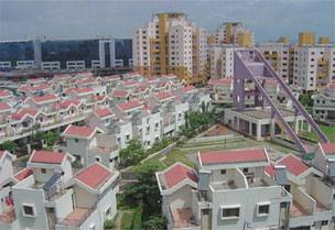A two tonne capacity Biogas plant is installed here wherein biodegradable waste goes through a process and the non-polluting biogas which is generated is used to generate power to operate a major percentage of the garden pumps. This saves excessive power requirements equivalent to 118 commercial gas cylinders of 19 kilograms capacity per month, which translates to a power generation of over 270 electrical units per day. Over 7,000 solar water heating panels installed on the terraces reduce heat effects on the top floors and are designed to save over 1.75 crore electrical units which potentially translates to more than 13,000 tonne of carbon emissions saved every year. An electrical vehicle is used for security. Low power consumption lights are fitted in streets and common areas.Vermiculture