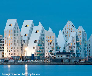 Idea of “The Iceberg” came into reality with renovation of out-of-use container terminal of the Denmark’s Aarhus Harbour. The Iceberg is the second largest city in Denmark to develop in a socially sustainable way which is meant to become a living city centre comprising massive amount of cultural and social activities. The iceberg is located on an astonishing waterfront of Aarhus providing highly mixed and diverse array of dwellings along with generous amount of workplaces. The futuristic project of “The Iceberg” aims to fulfill all the goals of overall city development along with the aim of integrating a diverse social profile in the overall neighborhood.The Iceberg Housing complex is a brain child of French architect Louis Paillard and it is developed by JDS architects, Danish studio CEBRA in cooperation with Ditch firm SeARCH on Aarhus Dockland having 21000 square meter area. The structure of The Iceberg has been allowed to rise to a maximum height of seven to eight floors above the sea level. The unusual shape sand structure of the building in the Iceberg dwellings are highly constructed according to the building norms set by the authorities in Denmark and futuristic advancements in the region.