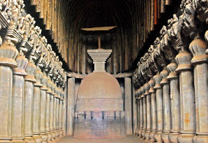 Karla cavesThe Karla caves are just 40 kilometres away from Pune. These are one of the oldest caves in the state but internal architecture is still strong enough and defeated the time line. The caves are not visible from down but when you go up you can’t imagine that the visible stones from outside can be such beautifully carved structures from inside. There are many heighted pillars with beautiful carvings on top, chaitya hall, one big stupa and extremely well designed roof top that is made of teakwood. The stupa has pictures of men, women and elephants on it. It gives the reflection of Buddhism period and we can’t resist going into deep of the history. One of these pillars has four lions on the top. We can enjoy the human life representation inside the cave in the form of rock carvings and structures. It is surprising that there are many halls, viharas, chaityas, and many chambers for monks to use or rest but there is not a single statue or rock cut of lord Buddha only the symbols represent Buddhism strongly. In short it is a must see as the fabulous interiors tell the hidden history of Buddhism period and people of that time.