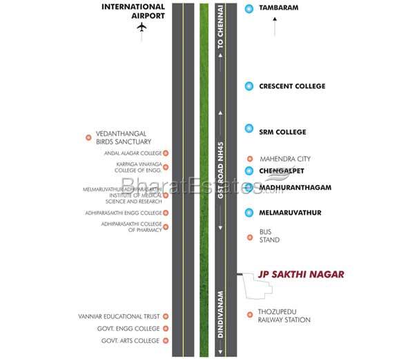 JP Sakthi NAgar, a place for Quality living & Deffinite Returns. 1 hr drive from Chennai, through GST. 1 minute drive from Railway Station & Bus stop. 5 minute drive from Engineering & Medical Colleges.