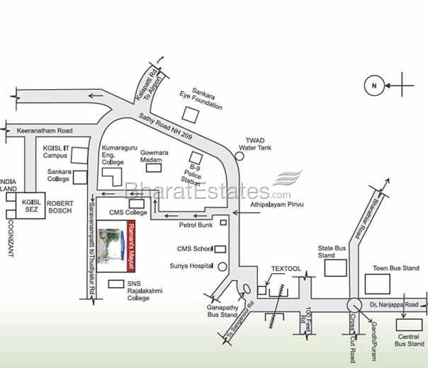 The Project is located close to Sathy Road, National Highway 209. The area which is fully developed with street lights, park and childrens play area has several families residing. It is also covered under the Athikadavu scheme which supplied drinking water. The area has a frequent Bus service. The Project has several inherent advantages. Residents have easy acces to Gandhipuram, The City Centre which is just 8 KM away and to the Airport which is just 12 Kms through the Kalappatti road. Several Prestigious schools, colleges and hospitals in close vicinity mae living easier. The Presence of IT Majors, Cognizant, Robert Bosch, Perot Systems and Ford Business Service Centre (FBSC) close by ensure good rentals and high appreciation.