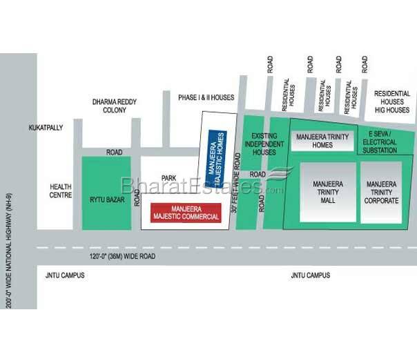 Manjeera Majestic - Commercial, abutting the 120' wide JNTU-Hitech City road, will be a post-modern edifice conforming to global standards and will be uniquely landscaped. It will be equipped with conveniences such as escalators and elevators of premium