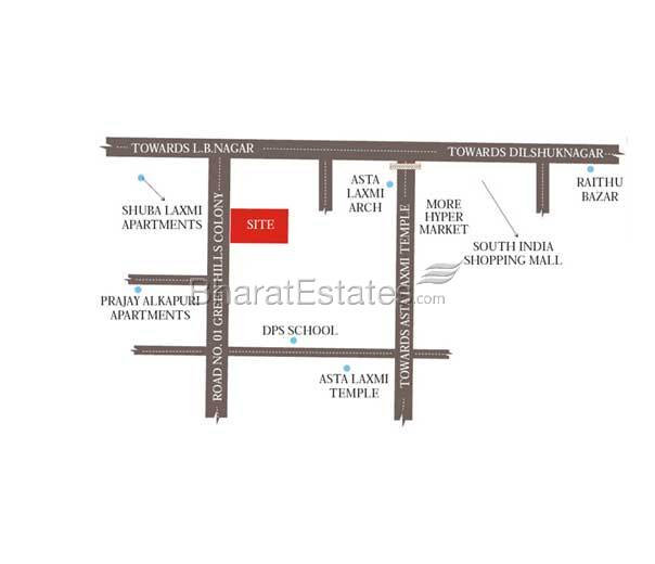 Jubilee Heavens is nested in the quiet and elegant residential neighborhood of Green Hills Colony. This venture is actually situated close to the N.H.No.9 and landmarks like the More Hypermarket, South India Mall, AsthaLakshimi Temple, Kothapet fruit market and the Rythu Bazar which are located within a stone’s throw distance.