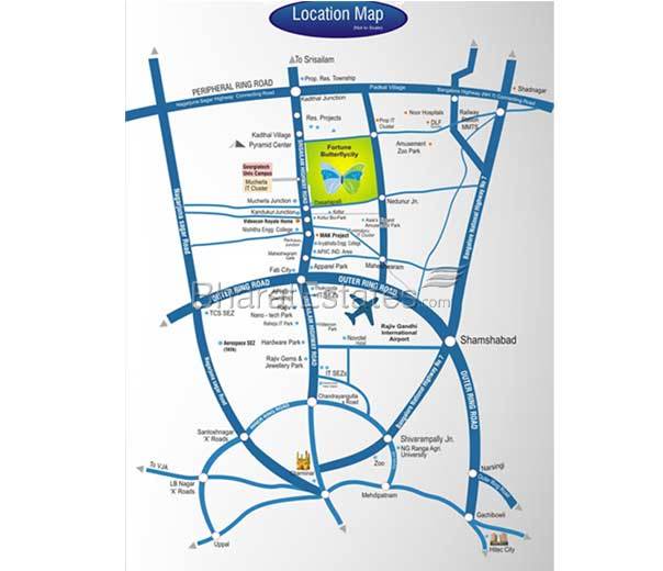 Fortune Butterfly City is an avant-garde integrated township that incorporates the best of features and facilities. Located on the 4-lane Hyderabad-Srisailam Highway, Fortune Butterfly City presents a picturesque scenario.