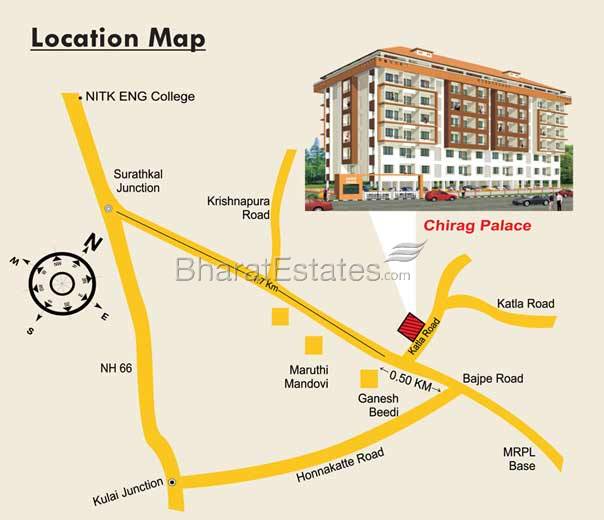 Its no secret about Chirag Builders hosting their new apartments project 'Chirag Palace' at Surathkal with few Flats. A lively place to make your home where everything is just few steps away. Be it your favourite Shopping Malls, Hospitals, Multy National Companies, Industries or your child's School / Medical & Engineering Colleges & Beautiful Arabian Sea, Temples & Famous Tourist Places or anything for that matter is within a radius of few yards away.