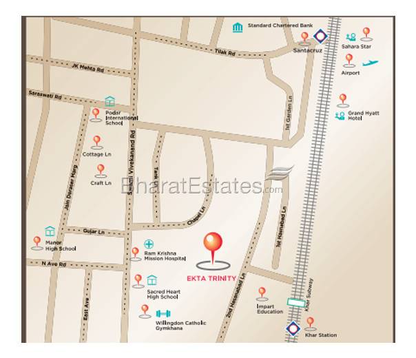 As one of the most awaited residential properties in Santacruz, Ekta Trinity will also be having a sky lounge on the terrace with spacious gazebo area and barbeque area. There will be a swimming pool-facing e-deck and a fully equipped gymnasium/health club.