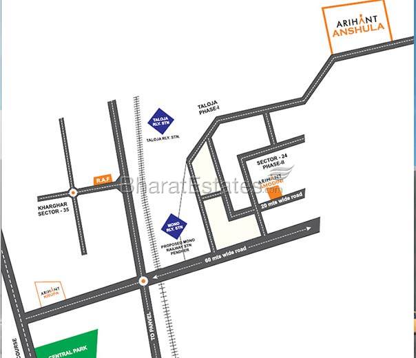 Arihant Anshula project is located in Taloja, project comes with silt + 4 storeyed building includes 25 buildings & total 488 flats with configuration of 1,2 & 3 BHK apartments.