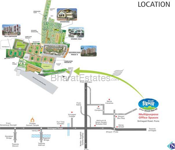 DSK Vishwa Commercial property stands just 2 km. off the bustling Sinhagad Road in the midst of modern Pune. Part of the DSK Vishwa Township, this property offers a captive market within the township, as well as an easy access to markets in the vicinity.