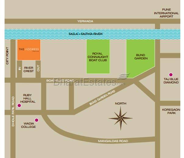 Located in the heart of Pune, each luxurious apartments at The Address has a clear view of the city's Mula-Mutha River and the fabulous landscaped gardens.