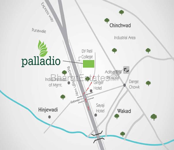Palladio is excellently located in Wakad-Tathawade, a thriving young suburb of Western Pune (India). This region has witnessed impressive appreciation in real estate investments in past few years and is expected to deliver much more in the years to come. In close proximity to Hinjewadi InfoTech and BioTech Park, this project is just 600 meters off the Mumbai–Bangalore six-lane Expressway. Two international airports, New Panvel and Chakan, are being planned just under 65 min driving distance. 5-star hotels, entertainment and leisure hot-spots are suitably located nearby, thus making this area the most-sought after by young-at-heart well-travelled Indians.