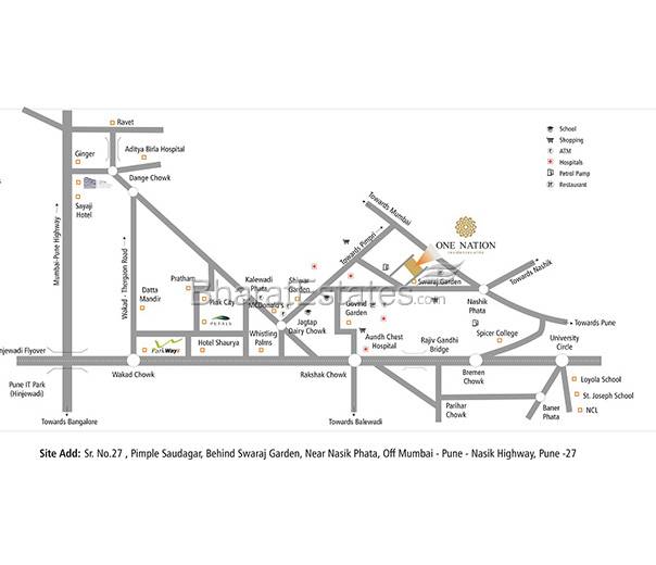 Everything about One Nation is enviable – starting with the location. One Nation is located on Pimple Saudagar the 65M wide BRT Nashik Phata- Ravet road. Hinjewadi is within close driving distance and both the Mumbai Expressway and Nashik highway are easily accessible. Adding to the wonderful connectivity and accessibility of this prime location is the proposed metro line which will come up on the same road.