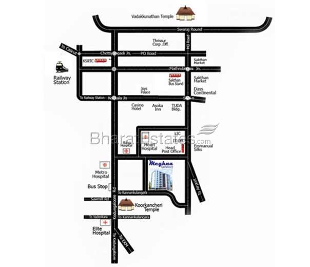 Meghna Residency, a G+9 apartment located at Shakthan Thampuran Nagar, Thrissur. The apartment consists of 35 beautiful flats arranged to offer every comfort imaginable in absolute quiet and tranquility. Apart from its good looks and location advantages, Meghna Residency provides you the option of 2 & 3 bed room apartment with all modern amenities like well equipped health club, centralized gas supply system, A/C association meeting hall, drivers’ room, common toilets, roof top party area etc.