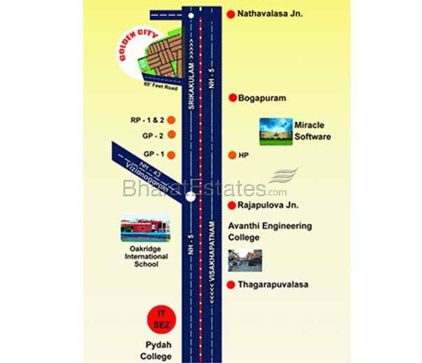 Golder City is located 35 Kms from Cioty Center of Visakhapatnam. The Six Lane NH-5 will to your destination in a smooth drive.